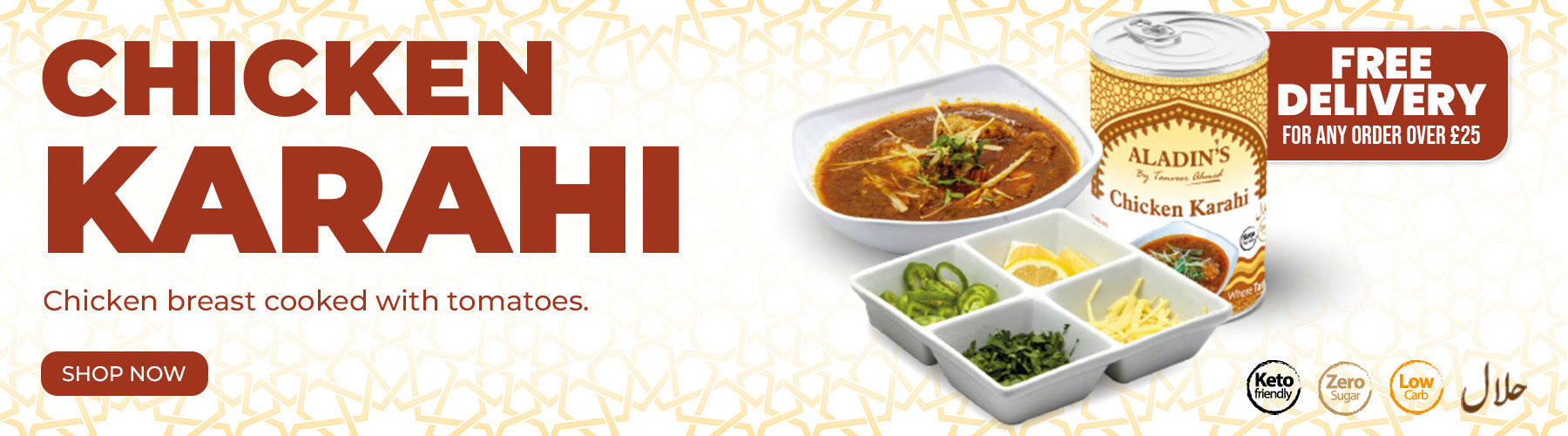 Download BrochureYou can taste the freshness of newly cooked food by Tanveer Ahmed from the comfort of your home. Aladin Foods are available in a Cans at food stores across the UK. Will soon be available in Europe, Americas and other part of the World.